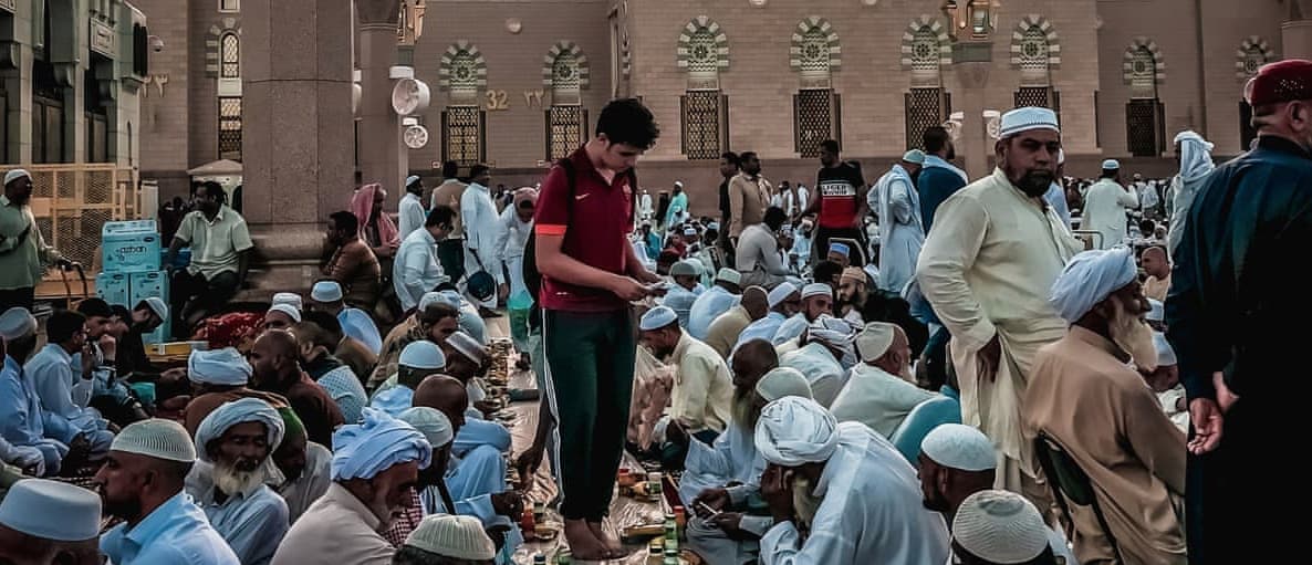 | | | During Ramadan, before and after Maghrib, the streets of Madinah are crowded with Muslims making duas. Local helpers clean and decorate the mosque and equip it with essential supplies. They prepare Iftar tables with dates, rice, meat, juices, coffee, tea, and Zam Zam water inside and outside the mosque. The poor and needy are also invited, which strengthens the sense of companionship and brotherhood among people.